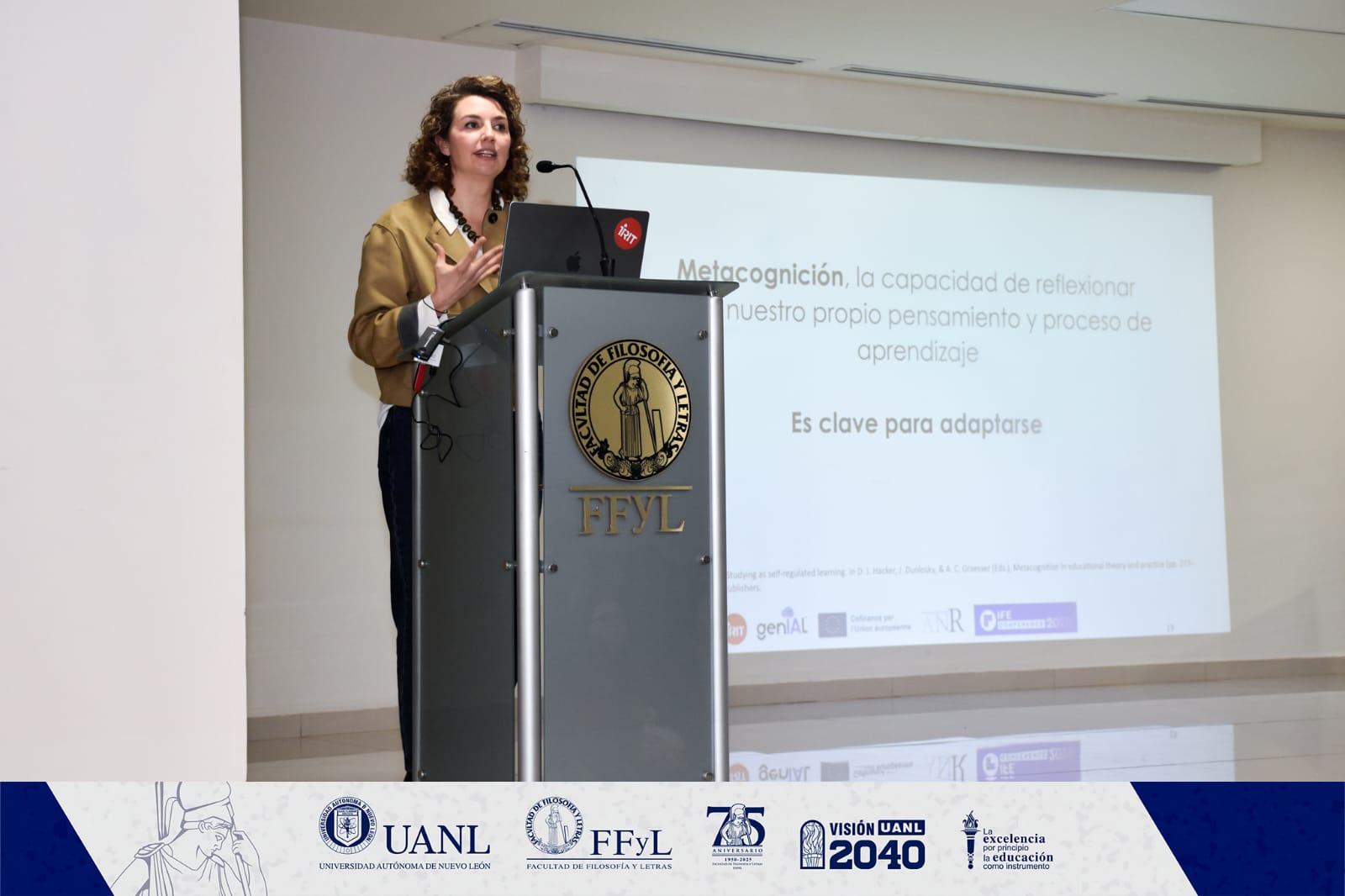 En este contexto, el lunes 26 de enero se llevó a cabo la conferencia “Colaboración humano-IA en la educación superior: desafíos, prácticas y perspectivas emergentes” en el auditorio “Alfonso Rangel Guerra” de la Facultad de Filosofía y Letras de la Universidad Autónoma de Nuevo León (UANL).