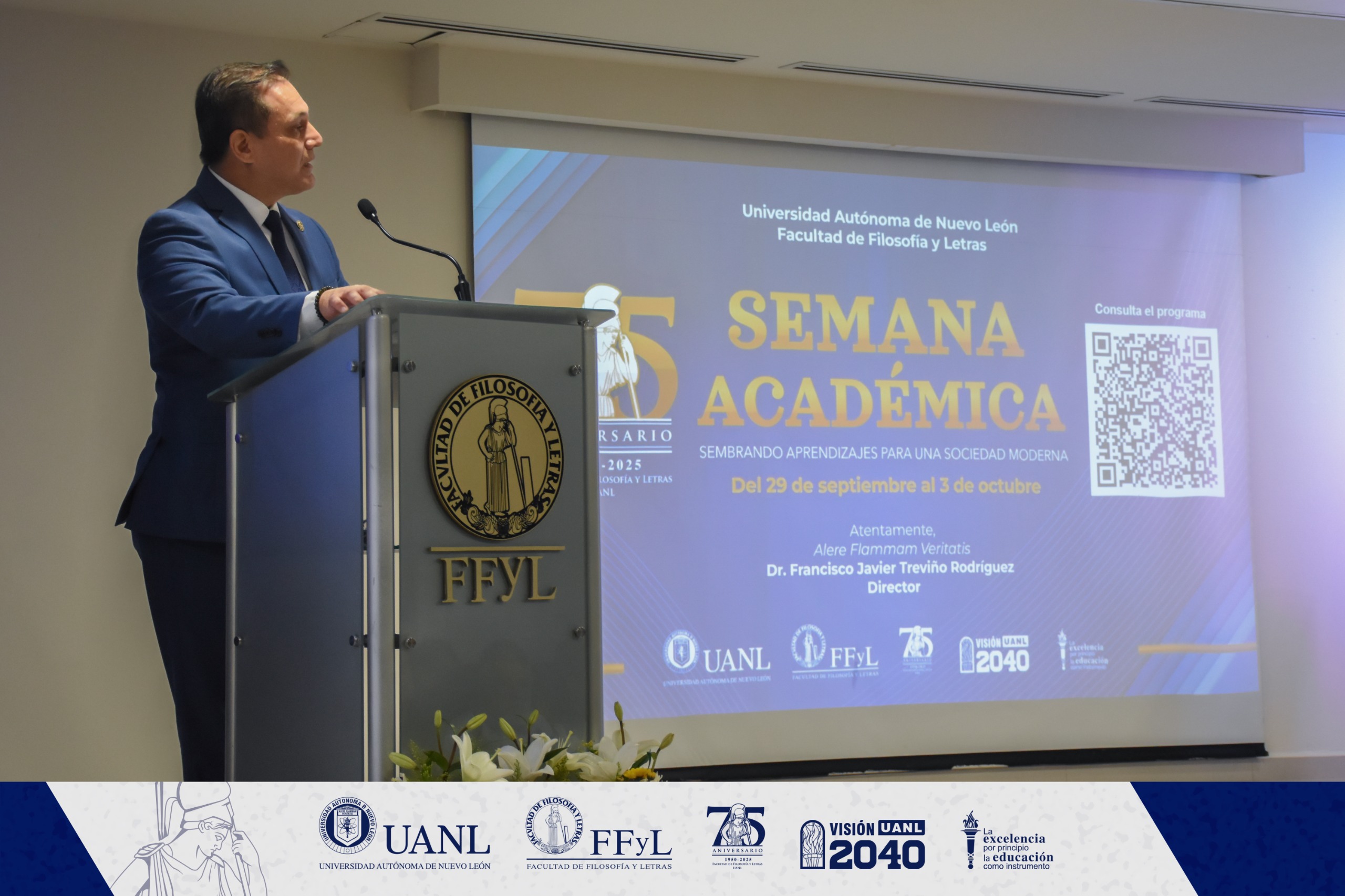 En el marco del 75 aniversario de la Facultad de Filosofía y Letras (FFyL) y el 92 aniversario de la Universidad Autónoma de Nuevo León (UANL), se inauguró la segunda edición de la Semana Académica “Sembrando aprendizajes para una sociedad moderna”, un espacio que busca el fortalecimiento de las unidades académicas y las líneas de investigación de la Facultad.