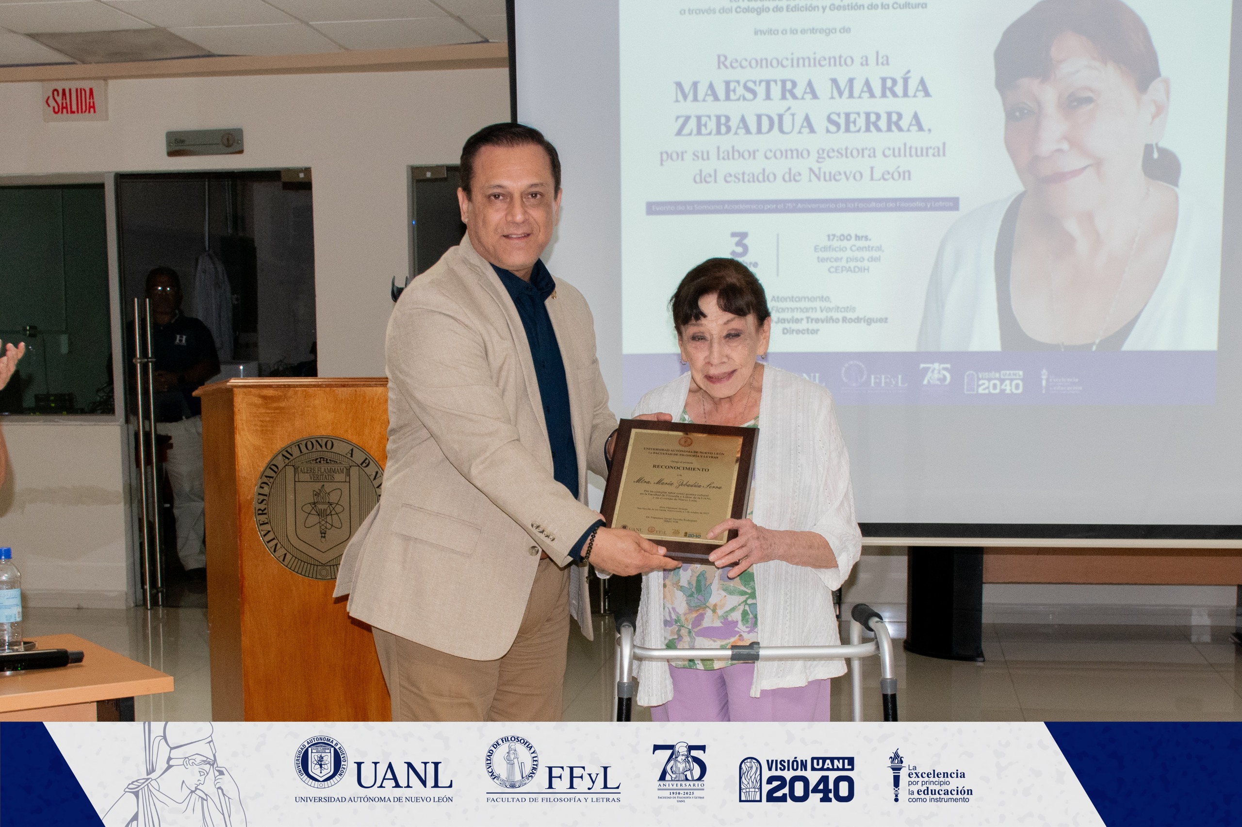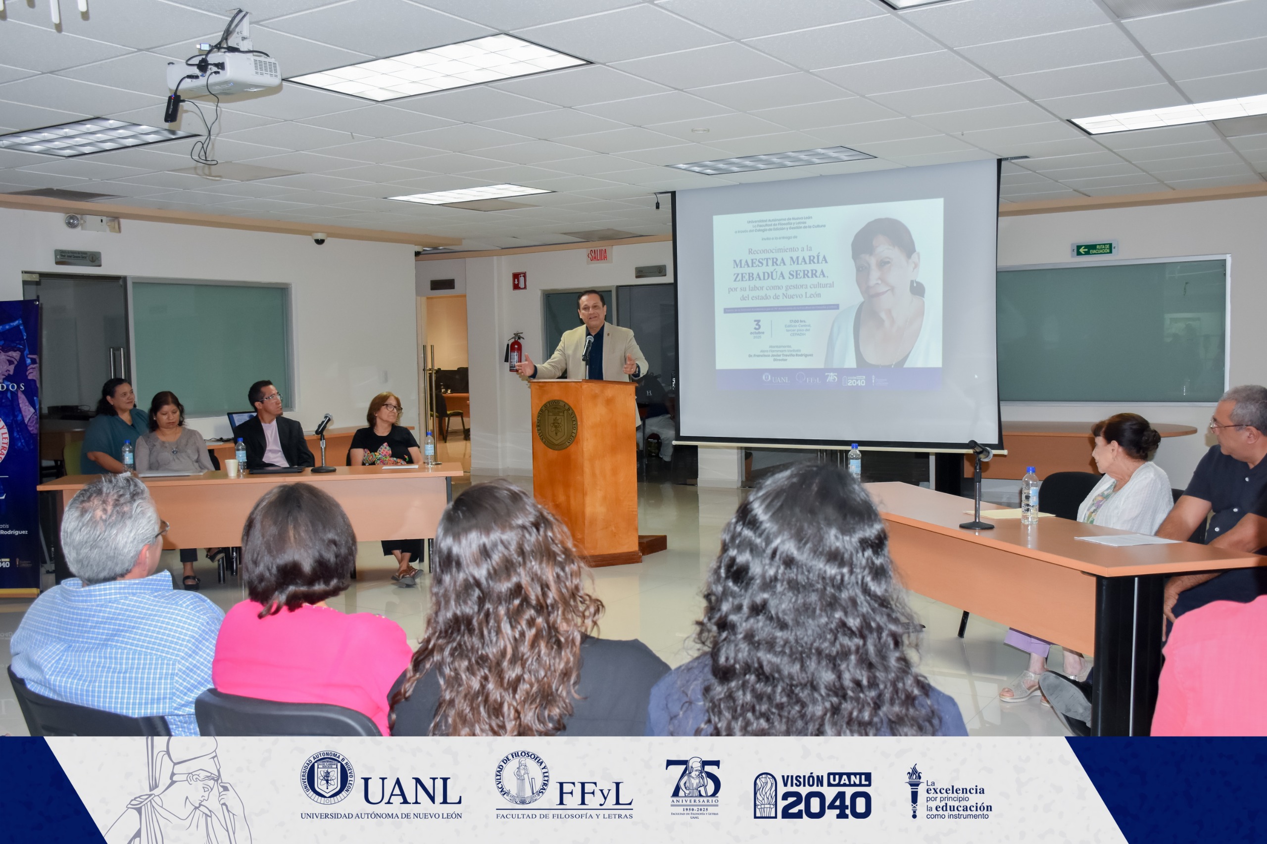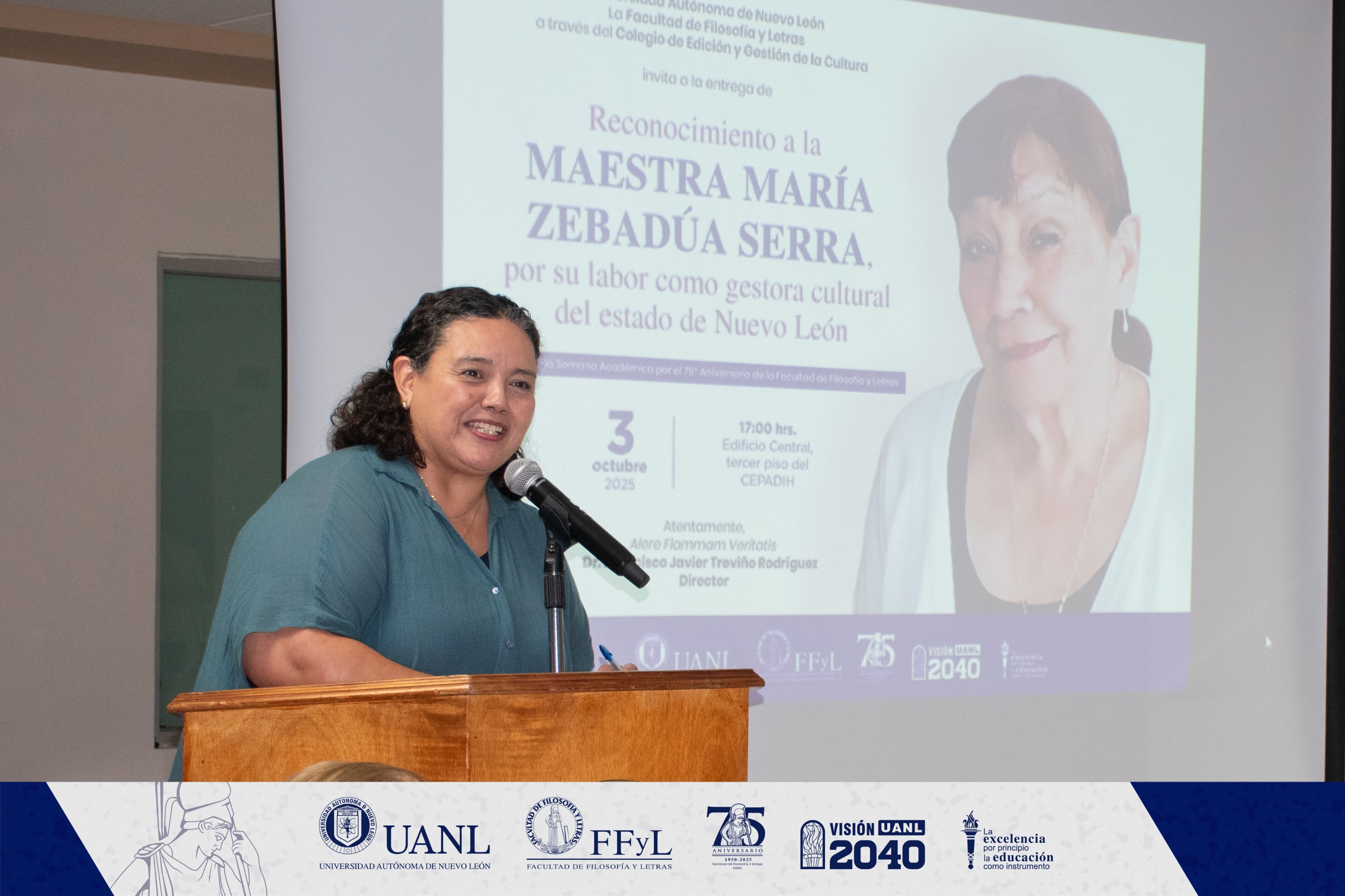 En el marco de la Segunda Semana Académica de la Facultad de Filosofía y Letras de la Universidad Autónoma de Nuevo León y con motivo del Día Internacional del Gestor Cultural, se rindió un emotivo homenaje a la maestra María Zebadúa Serra, en reconocimiento a su trayectoria y contribución al desarrollo cultural del estado de Nuevo León.