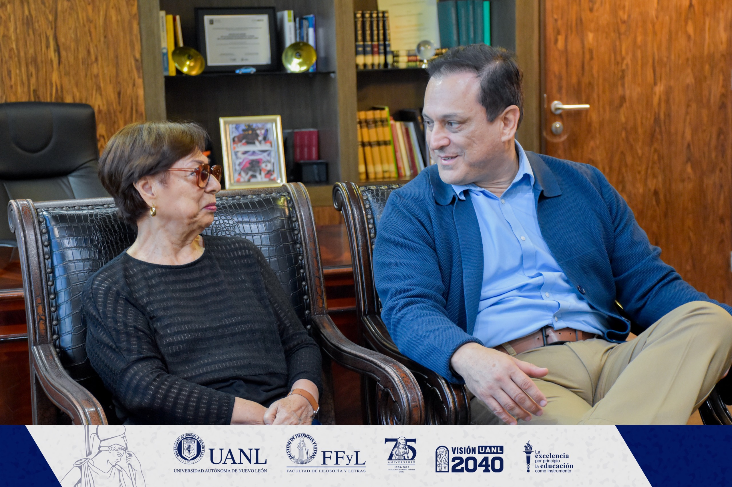 En el marco del 75 aniversario de la Facultad de Filosofía y Letras de la Universidad Autónoma de Nuevo León, la Mtra. Elvia Hernández Flores, fundadora y primera coordinadora del Colegio de Historia, realizó una visita a la institución.